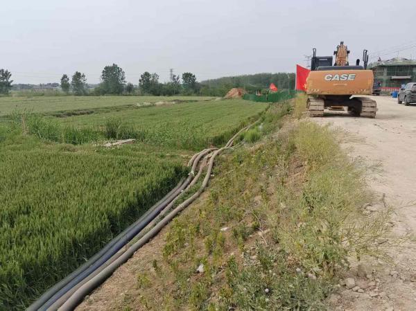 2025年5月1日,蚌埠江河公司安徽省沿淮行蓄洪區(qū)等其他洼地治理工程-沿渦等3片洼地工程總承包施工3標(biāo)項目部快速反應(yīng),成立抗旱保供專班,抽調(diào)技術(shù)骨干組建黨員突擊隊,與懷遠(yuǎn)縣機電灌溉站緊密協(xié)同作戰(zhàn),從安徽省機電排灌總站淮南防汛抗旱設(shè)備庫緊急調(diào)配機電排灌設(shè)備,為受旱鄉(xiāng)鎮(zhèn)搭建臨時抽水泵站,助力群眾抓住農(nóng)時,確保豐收。在首批大功率潛水泵、2000米電纜及配套設(shè)備抵達旱情比較嚴(yán)重的懷遠(yuǎn)縣龍亢鎮(zhèn)后,項目部爭分奪秒,連夜完成設(shè)備安裝調(diào)試,從拉線到通水僅僅用時12 小時,確保水源能夠及時輸送到田間地頭。